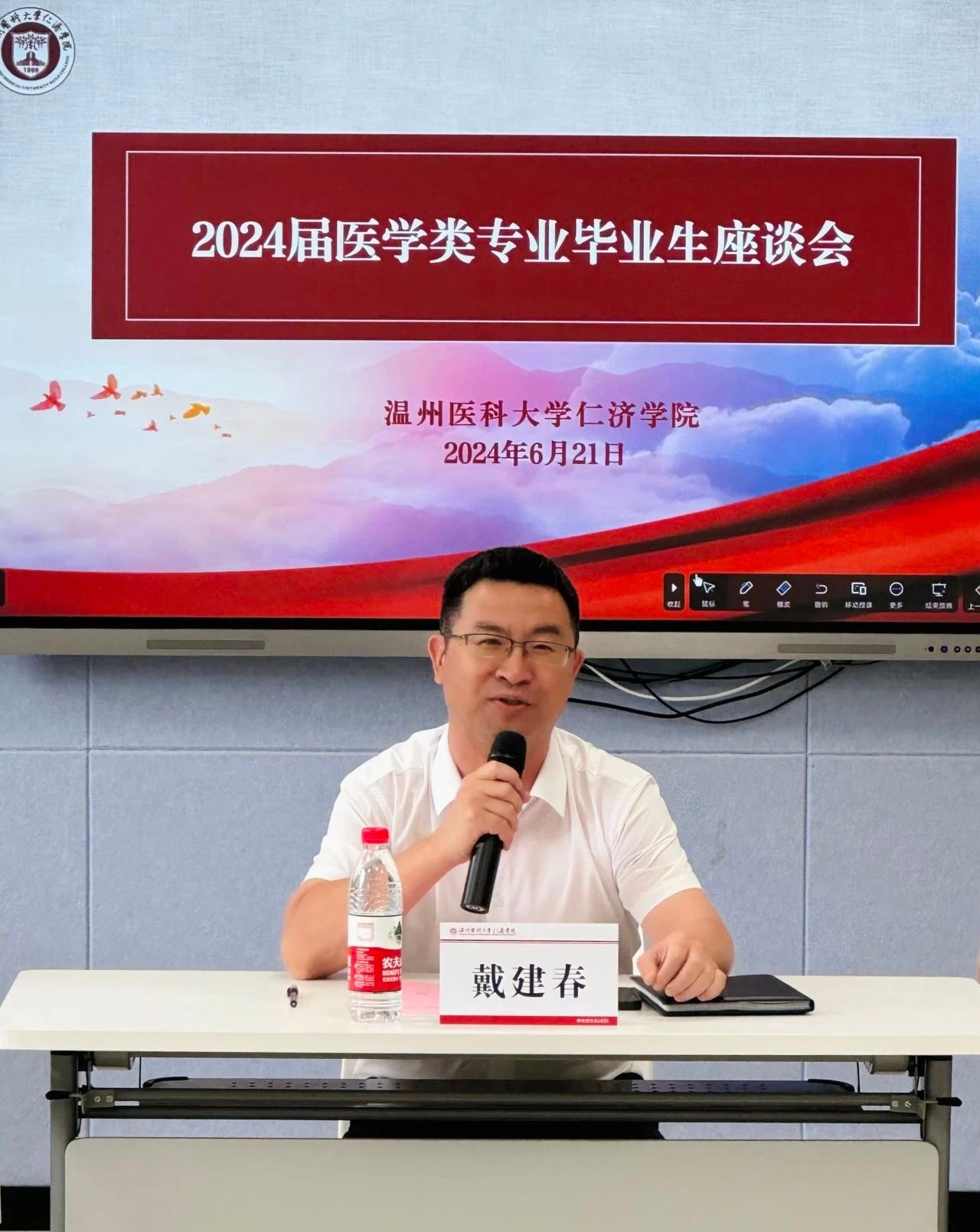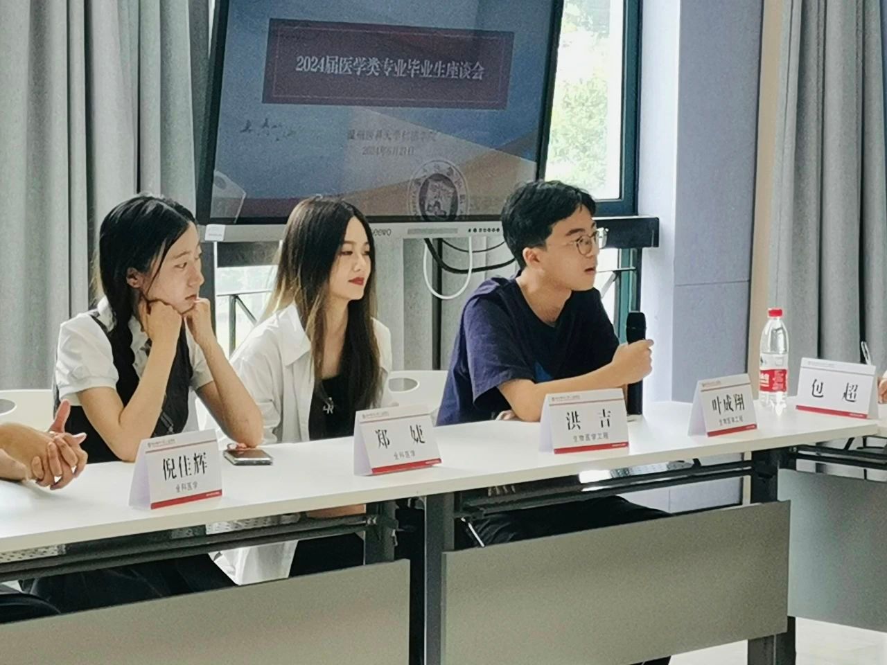 6月21日下午,我院在茶山校区召开医学专业毕业生座谈会。学院副院长戴建春携相关职能部门负责人与22名医学专业毕业生代表齐聚一堂,畅谈学习成长感悟,共话学院发展愿景。