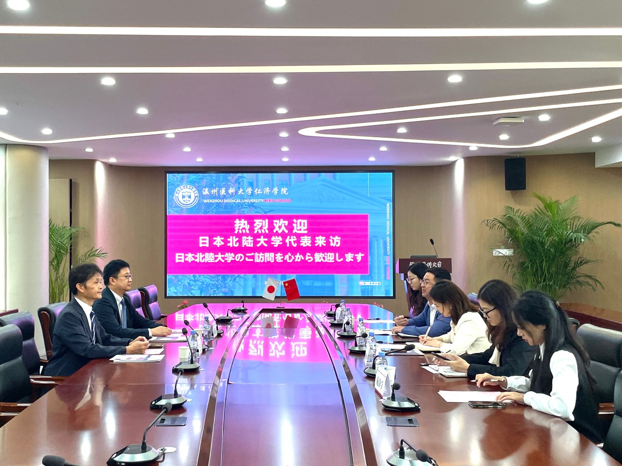 会上,我校国际合作交流处处长诸葛晶介绍了近年学校国际化教育发展成果与愿景,并表示欢迎日本北陆大学成为我校海外友好院校交流访学基地。我校外国语学院日语教研室主任陆晓鸣希望双方合作拓展医学相关暑期短期交流项目,进一步推进日语辅修专业的人才培养。