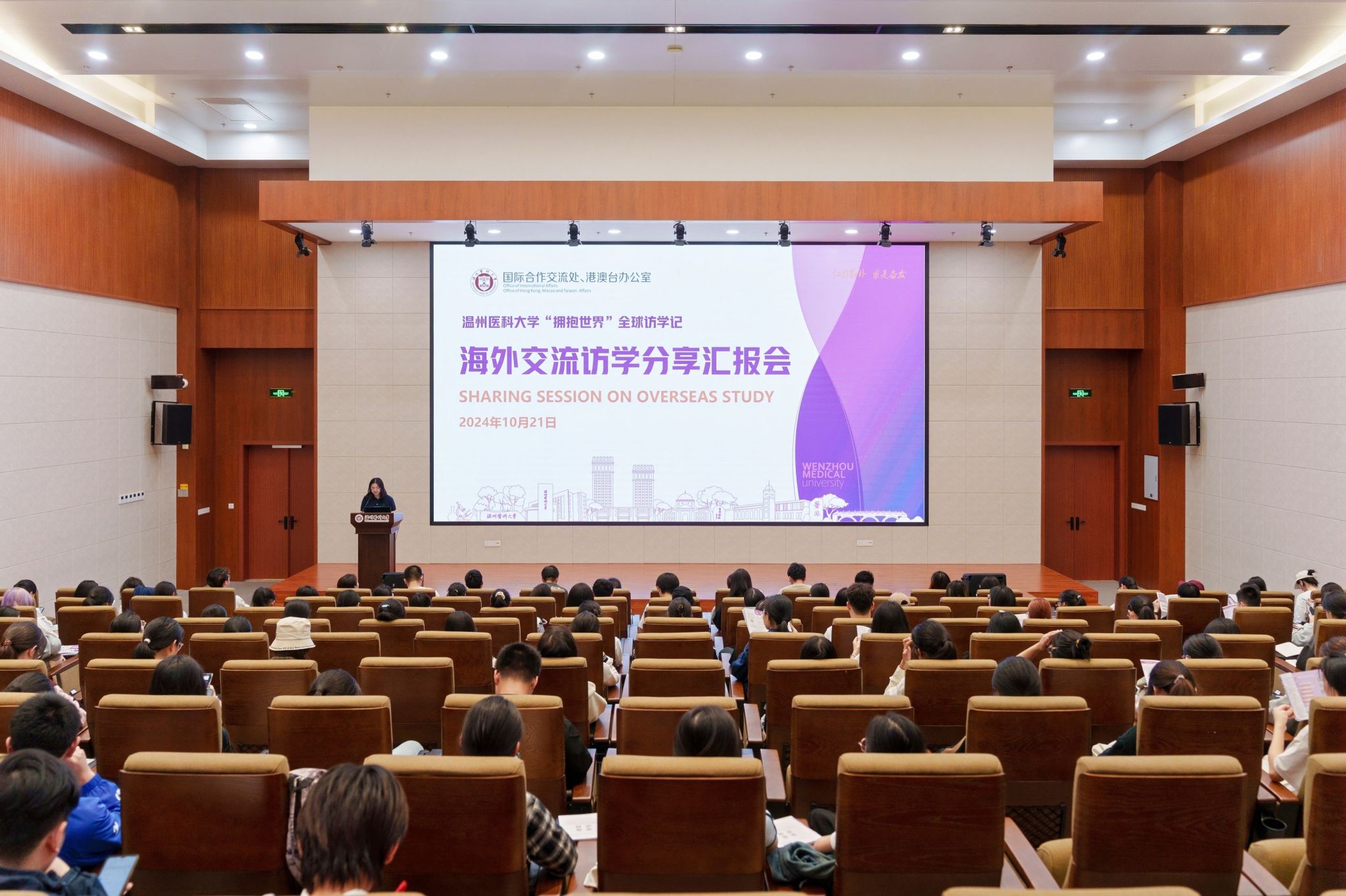 此外,郑优悦同学还代表仁济学院参加10月21日在生物医药科研楼学术报告厅举行的“拥抱世界,共话成长”海外交流访学分享汇报会,现场共有来自各学院的9名同学做分享汇报,为大家带来一场别开生面的交流之旅。