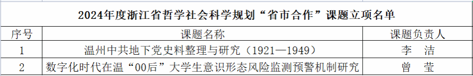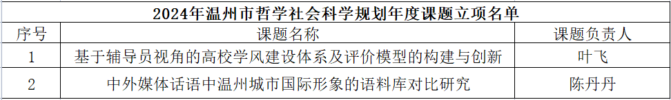 此外,温州市社会科学界联合会发布了《fb体育登录入口·(中国)官方网站2024年度温州市哲学社会科学规划年度课题立项名单的通知》,我院也有两个项目成功获立项。