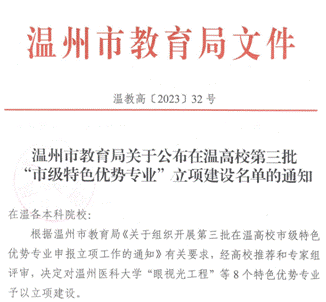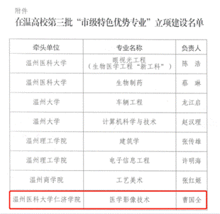 3月21日,温州市教育局公布了在温高校第三批“市级特色优势专业”立项建设名单,我院医学影像技术成功获批立项,进一步凸显了学院的办学特色和专业优势。
