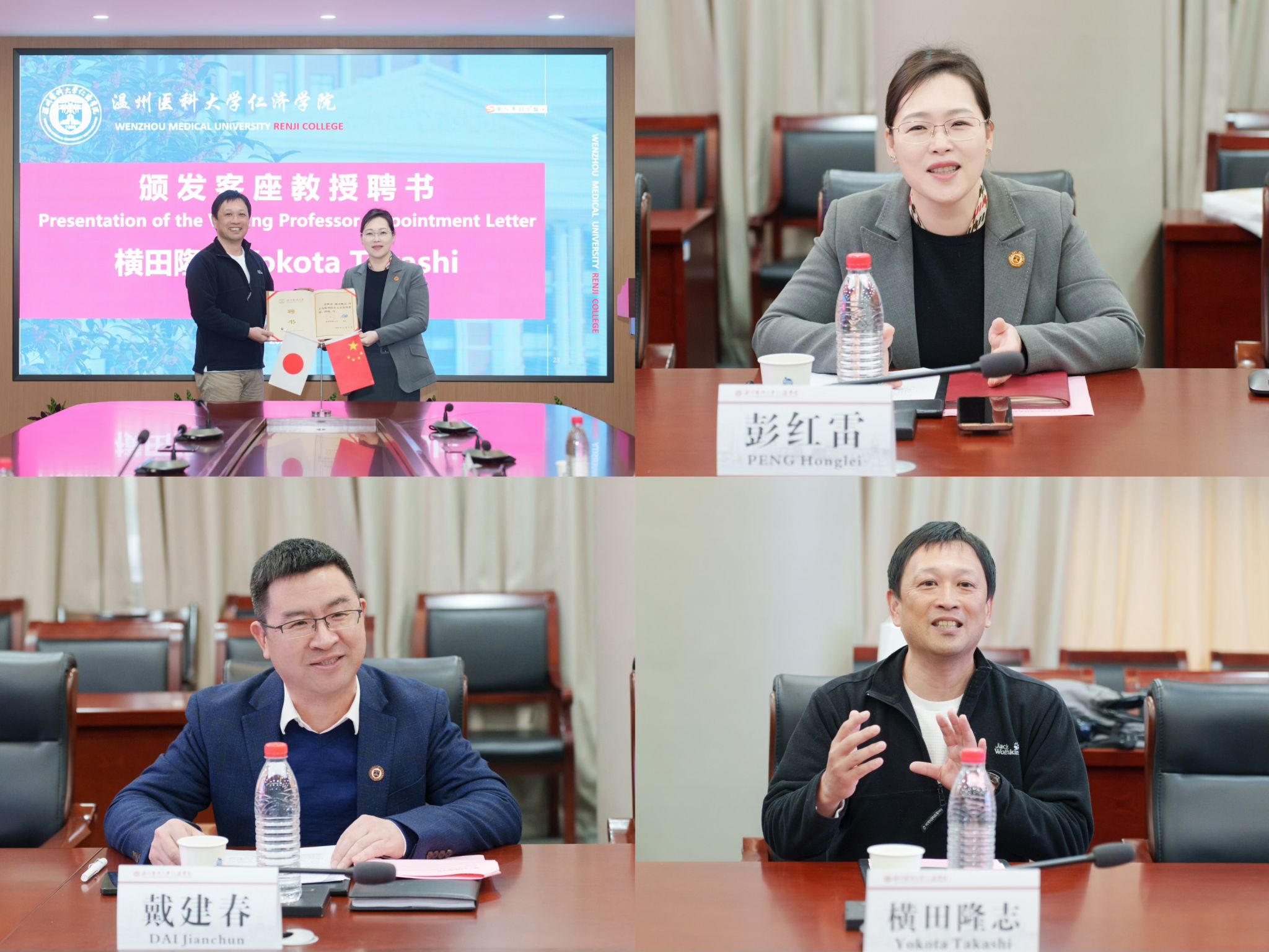 3 月 3 日上午,横田隆志教授与仁济学院党委书记彭红雷、副院长戴建春在茶山校区进行了交流。会上,彭红雷书记对横田教授的到来表示欢迎,对两校历年来的合作成果表示肯定。戴建春副院长向他介绍了院校国际合作交流情况。最后,彭红雷书记为他颁发客座教授聘书,标志着两校合作关系的进一步巩固。