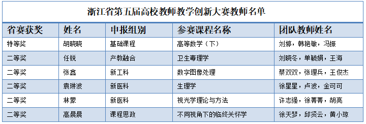 5月24日,浙江省第五届高校教师教学创新大赛决赛圆满落幕。经过激烈角逐:我院推选的参赛团队共6支获奖,其中特等奖1项,二等奖5项,在获奖数量及等级上再创佳绩。