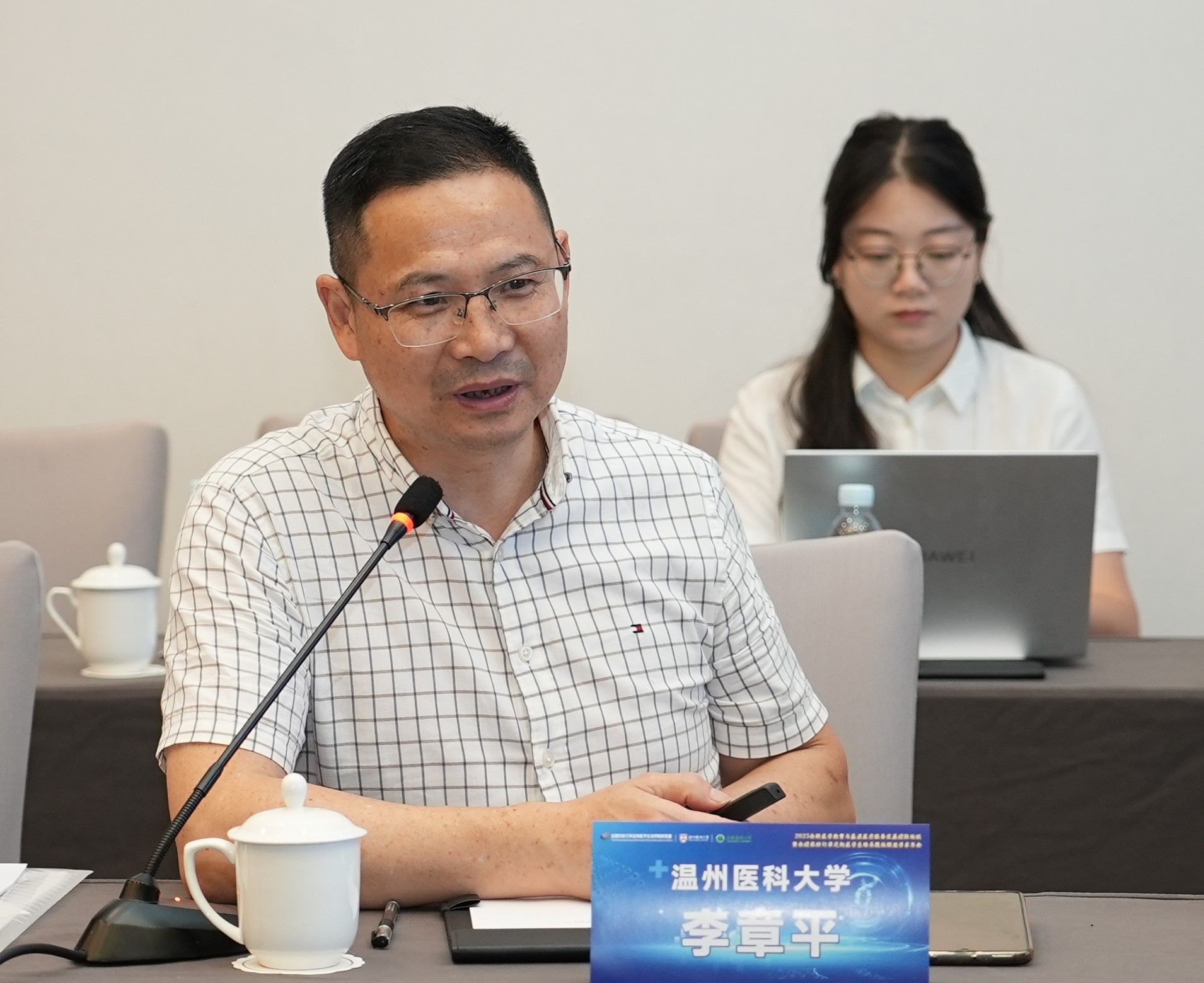 联盟秘书长、温州医科大学教务处处长李章平汇报工作,总结 2024-2025 年联盟在机构机制、学术交流、教科研合作的成效,提出 2025-2026 年在教学竞赛、教学交流、研究合作、学术交流四个方面的提议与思考。