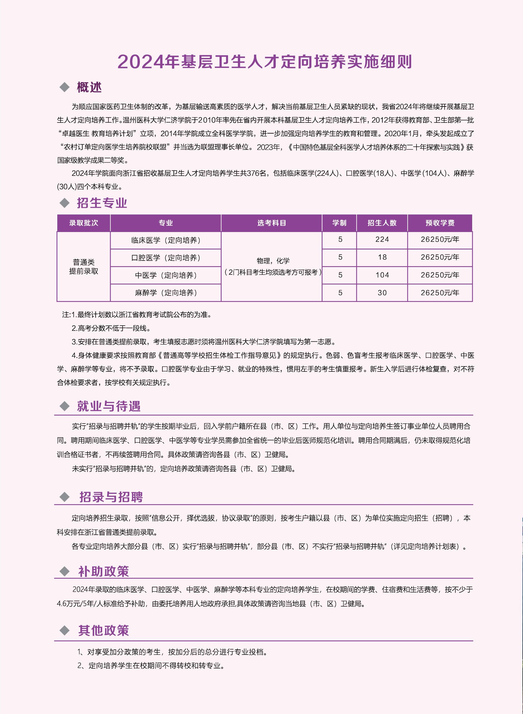权威发布 | 2024年基层卫生人才定向培养实施细则与招生计划