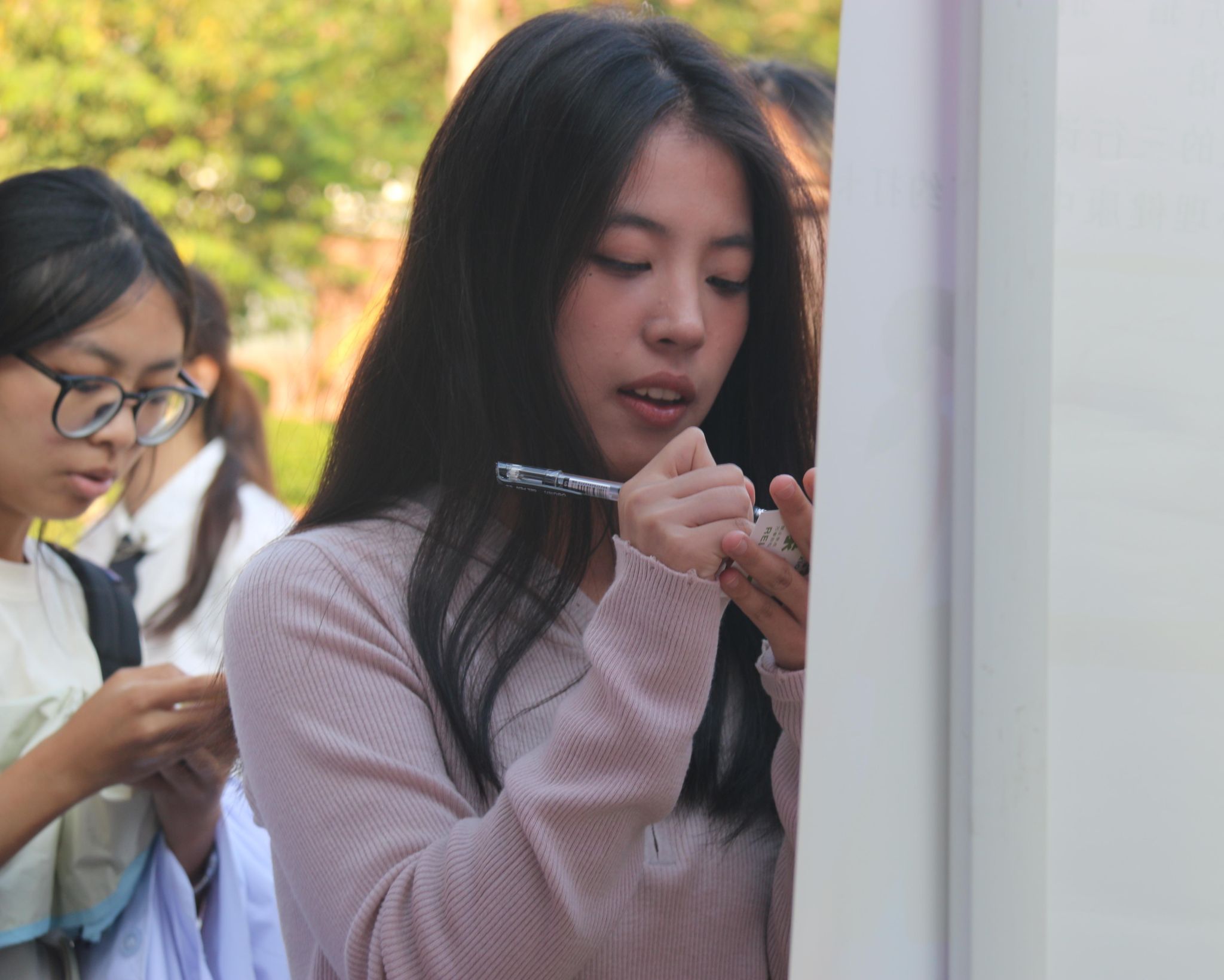 活动过程中,同学们不仅收获了有关心理精神卫生方面的知识,更感受到了同学之间的关爱和相互支持。写下既有对未来的展望又有对他人的祝福的语句,写下对暖暖秋光的赞美诗句,让内心活动与笔墨触碰,舒缓孤独与焦虑,传递着爱与温暖。活动在一句句对彼此的美好祝愿下圆满落下帷幕。