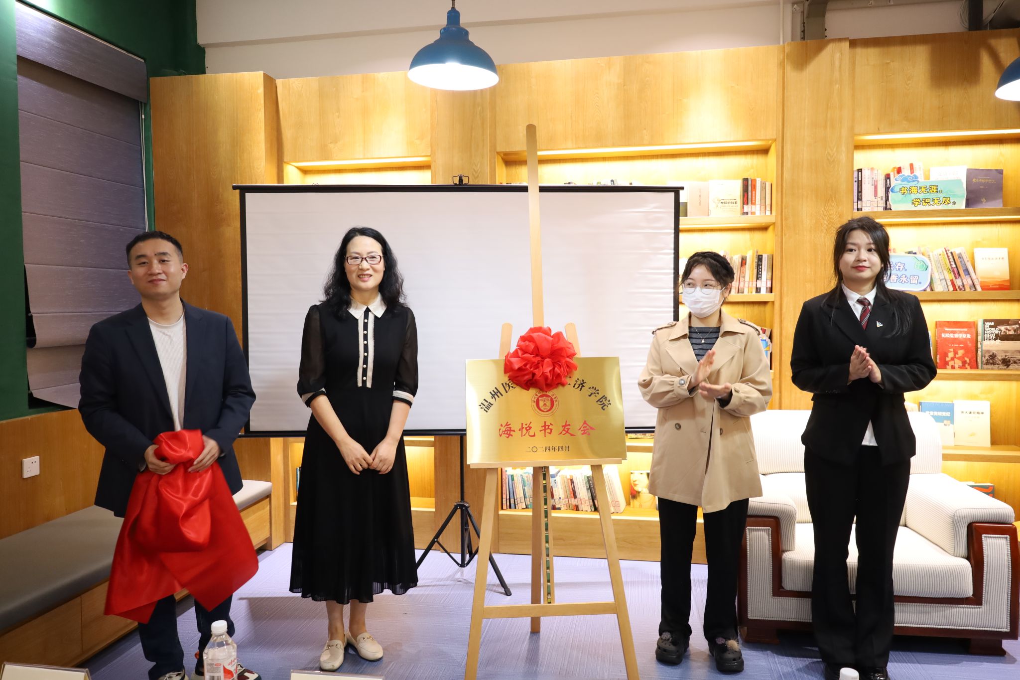 4月23日下午,春意正浓的温州医科大学滨海校区,迎来了一项意义非凡的活动——“海悦读书会”揭牌仪式暨“阅读改变人生”主题分享活动。此次活动特邀温州市洞头区知名作家施立松老师作为主讲嘉宾,学院党委副书记张立康老师亦亲临现场,与学生工作部、院团委、相关负责老师以及五十余位热情洋溢的学子共同见证了这一文化盛事。